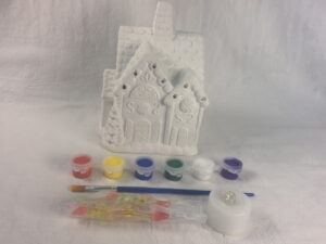 石膏圣诞房屋油漆套装,包括 6 种颜色的油漆 + 1 个带灯的刷子